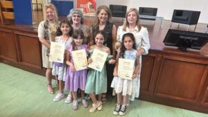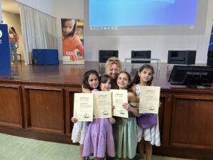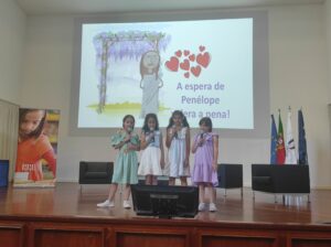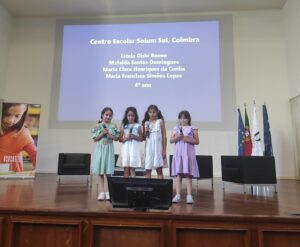 As alunas foram a Lisboa receber o prémio, no passado dia 15 de junho, acompanhadas pelos respetivos Pais/Encarregados de Educação e ainda pela sua Professora Titular de Turma, Catarina Simões e pelas Professoras Bibliotecárias do Agrupamento, Nazarete Catré e Leonor Custódio, esta última na qualidade de Coordenadora das Bibliotecas Escolares do Agrupamento.